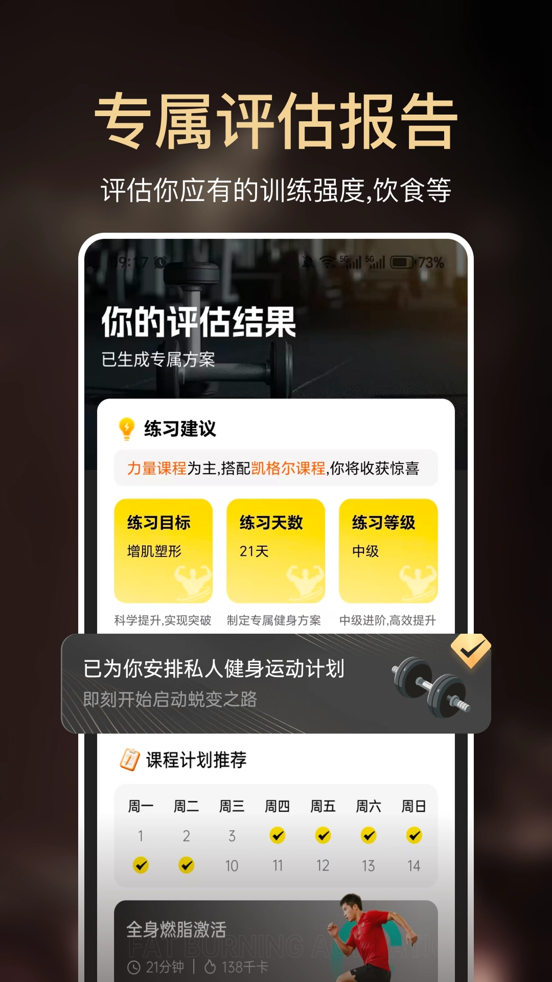 能自动记录每次训练的时长、消耗热量、完成组数等各项数据,并生成训练日历与进度曲线,让坚持的成果得以直观呈现。