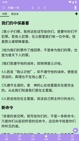 3、支持通过关键字进行搜索,以便快速定位学习内容;还允许添加备注来帮助加深理解,并且同步提供圣经相关的注释与分析。