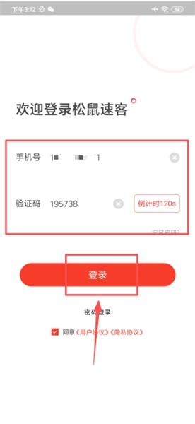 输入手机号与验证码并勾选协议,完成平台登录。