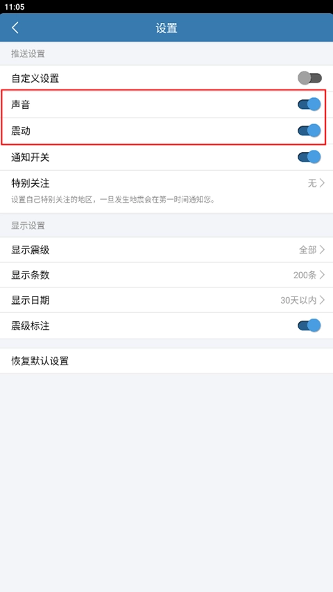 地震速报怎么设置报警声?
