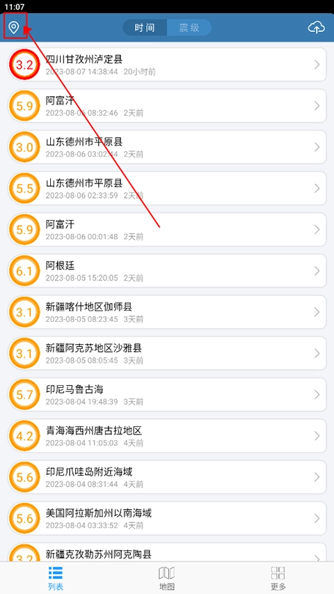 切换到震级列表,可以按照地震的等级来查看地震