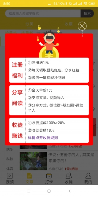 3,阅读领收益,用户可以通过转发的形式将自己觉得有优秀的文章分享出去,只要对方点击查看,你就可以获取相应的收益,能够帮助用户轻松地赚钱;