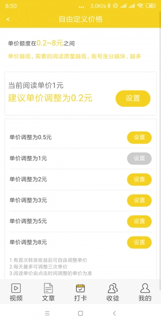 设有1元转发单价,最低满8元即可提取,提器当天即可到账