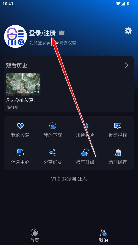1.打开追剧狂人,点击右下角我的。