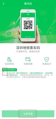开通流程如下:点击“乘车码”,再点击“立即开通”,随后完成微信免密支付的授权操作即可。