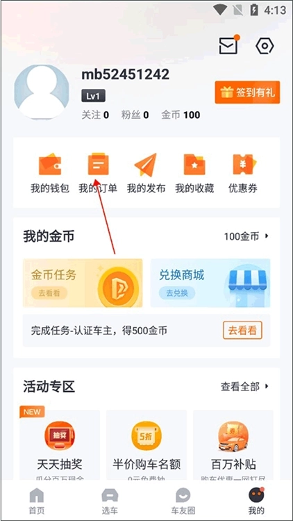 2、进入个人界面后,点击我的订单。