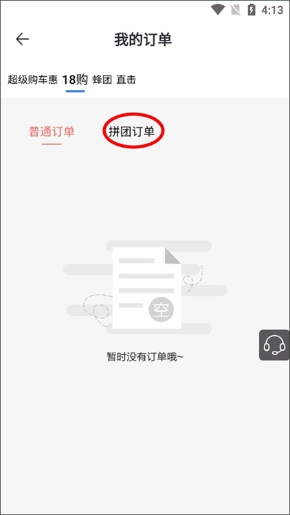 3、在18购的界面点击拼团订单就可以查看了。