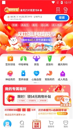 涵盖了海量优质上架药品,包括家中带备药、保健养生、专科用药、男性用药、成人用品等。药品涉及医药领域方方面面,一应俱全,让用户一站式购健康。