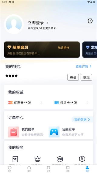 3、同时在我的页面中可以查看自己的订单和发单等数据;