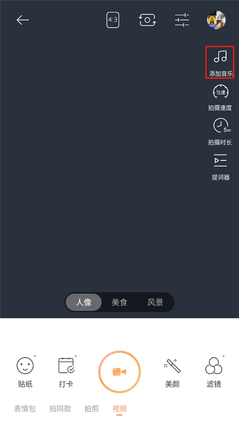 4、要是想在视频里添加音乐,点击右侧的添加音乐功能即可。