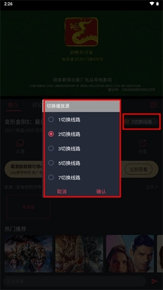 3、若加载速度较慢,可点击线路切换按钮,点击“确认”即可完成操作。