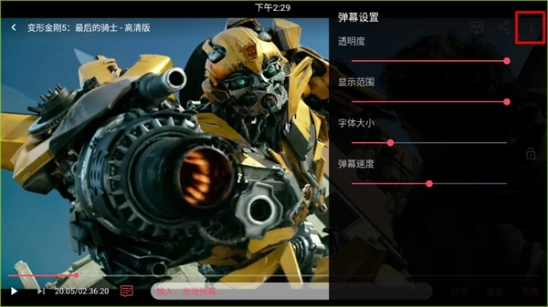 4、点击“更多”图标,可以进行弹幕设置
