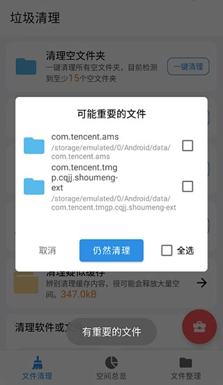 6、清理结束后,系统会提示是否要清理重要文件,你可以点击查看相关文件,若无需清理,点击“取消”即可。