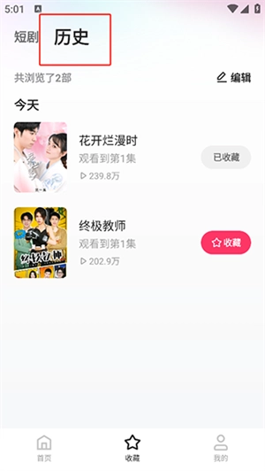 若您已收藏相关剧集,可在【收藏】板块查看所有收藏内容及对应的观看进度。此外,在【收藏】下的【历史】子栏目中,还能查看您曾经观看过的所有剧目。