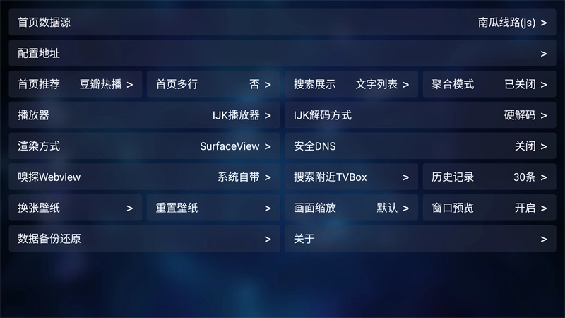 3、之后我们还能够借助设置功能,对首页数据源、配置地址、渲染方式、数据备份与还原等参数进行调整。