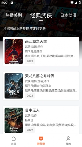 2、点击排行榜,这里会呈现近期上线的热门影片内容。