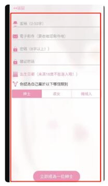 6、把所有资料都填写好后,选择对应的类别——绅士、淑女或者机械人,接着点击【注册】按钮,稍等几秒就能完成注册了。