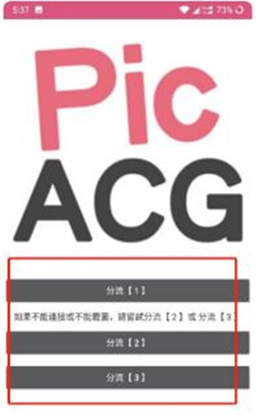 1、完成后,打开并进入软件,点击【分流1】;若无法打开,可选择【分流2】或【分流3】。