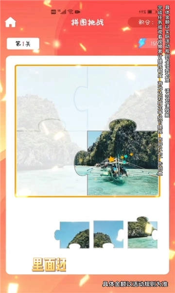 每当你完成一个阶段性的拼图任务,系统就会发放对应的红包奖励!