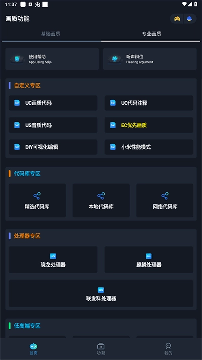 3、软件内设有自定义专区、代码库专区和处理器专区,用户可参考这些专区的内容对相关操作进行优化。