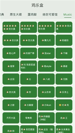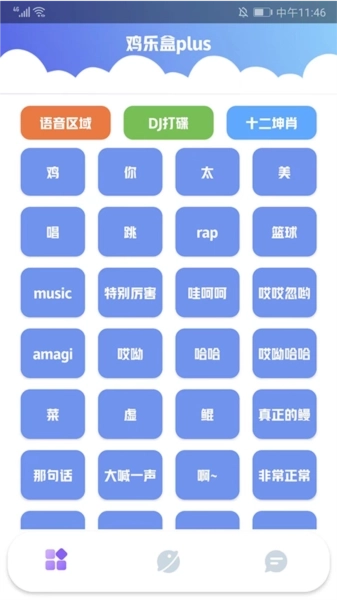 它还新添了语音专区、DJ打碟、专属坤坤游戏、趣味坤坤头像以及魔性坤坤音乐等板块,你既能体验每一条趣味语音,也能保存坤坤专属头像、游玩坤坤系列游戏。鸡乐盒还把“你”“太”“美”“哈哈”“干嘛”等魔性语句单独拆分出来,我们可以自由组合这些词语进行有趣的音乐创作,制作完成后不仅能和小伙伴分享,还能在游戏开黑时使用,是烘托氛围、活跃气氛的绝佳选择。