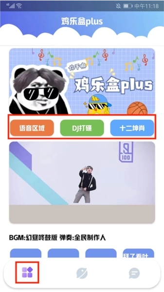 2、在语音界面中,涵盖语音区域、DJ打碟以及十二坤肖等频道,点击不同的图标与字体,系统便会播放对应的语音。