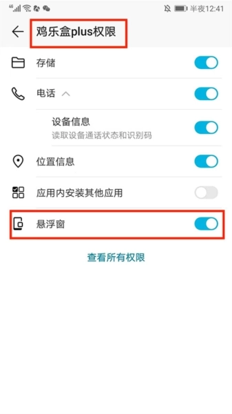 1、在手机设置的应用管理里找到鸡乐盒,接着进入权限管理界面,勾选【悬浮窗】这一选项。