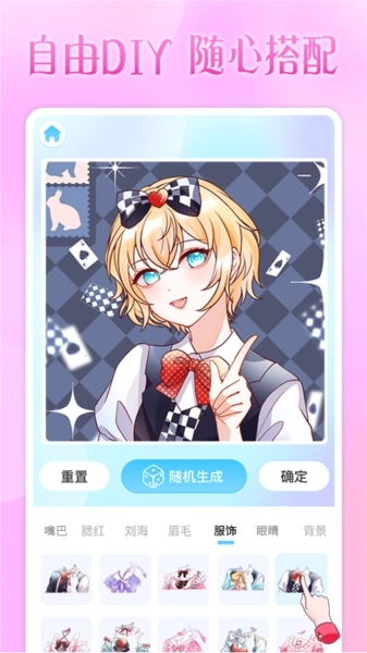 它最核心的亮点在于支持用户自主创作——要是对现有库中的头像场景搭配不满意,用户只需点击头像就能进入编辑界面,对头像的各类细节进行替换调整,比如装饰、眉毛、眼睛、刘海、服饰、背景等元素都能自由更改。要是修改时缺乏灵感,应用还贴心配备了随机生成和AI美化功能,轻松帮您摆脱选择恐惧症的困扰!