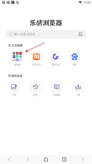 1、乐感浏览器的主页会展示收藏内容,一键就能直接访问各大网站。