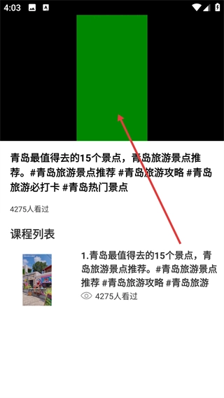3、在景点推荐详情页,点击相应的内容条目,即可进入景点介绍的视频播放界面。