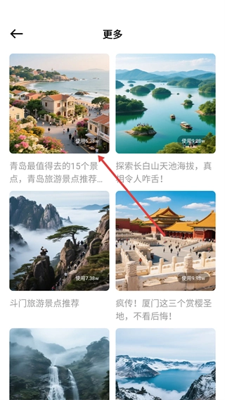 2、在更多景点页面,挑选目标景点的推荐内容(例如青岛相关推荐),然后进入该内容的详情页面。
