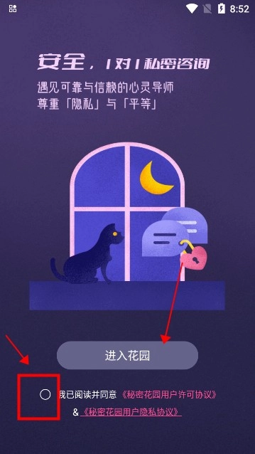 2、勾选隐私协议,点击进入花园。