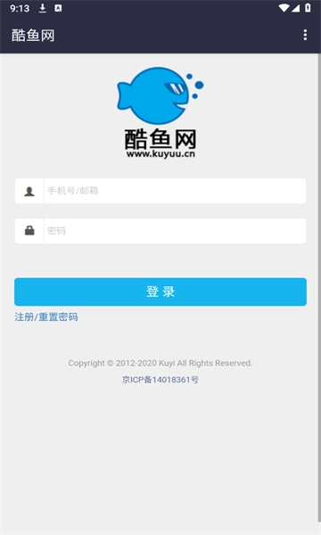 1、打开酷鱼网,若已有账号,可选择登录;若没有账号,则点击下方的注册按钮。