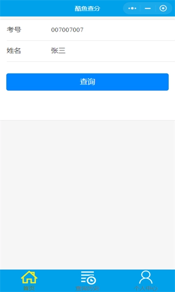 3、进入软件后,输入自己的学号和姓名就能查分。