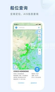 1. 借助电子海图,查看全球范围内的船舶实时动态; 2. 可依据船名、呼号、MMSI、IMO等信息对船舶进行搜索。