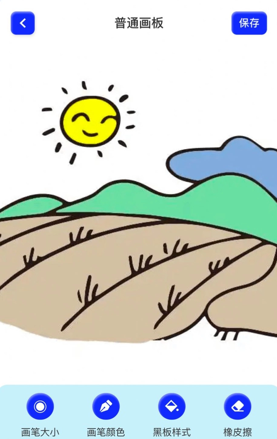 2、画板:可调节画笔的粗细与颜色,也能自定义颜色,同时支持橡皮擦粗细的调节。