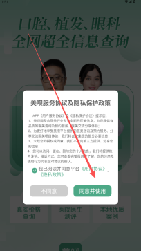 1、仔细阅读美呗服务协议与隐私保护政策,勾选用户协议和隐私政策相关选项后,点击“同意并使用”按钮。