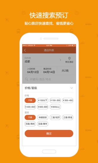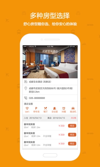 在线预订:全面接入火车票、机票、酒店在线预订功能,一站式完成所有预订;
