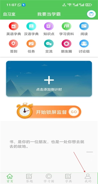 1、打开软件首页,浏览各类学习功能的入口,点击底部的“我的”按钮,进入个人中心页面。