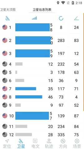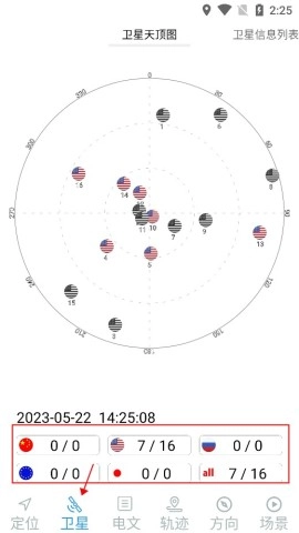 2、您能够在软件里查看卫星的分布状况,若想进一步了解,只需点击卫星信息列表即可。