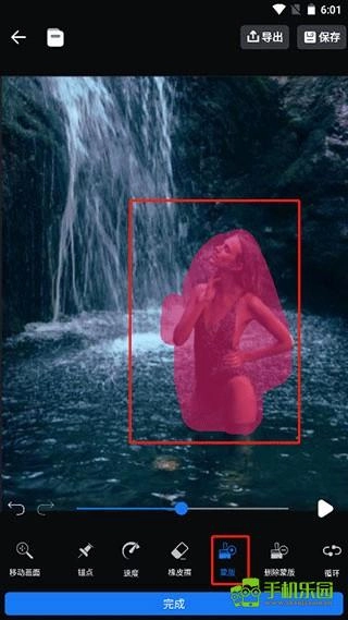 5、最后点击【蒙版】,使用蒙层将不需要流动的区域冻结,比如图中的人物;