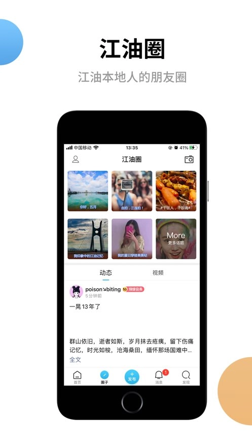 2、【江油圈】本地圈焕新升级;好友动态、附近的人、达人榜等功能,期待你的探索