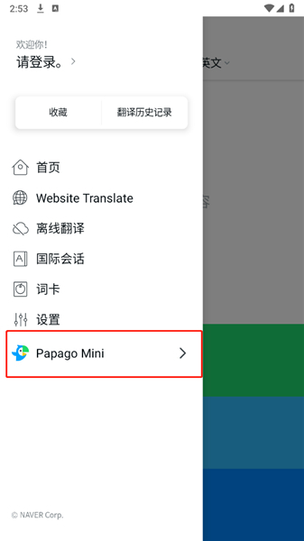 1、在Papago中韩翻译器的左侧栏里,选择“Papago Mini”这个选项。