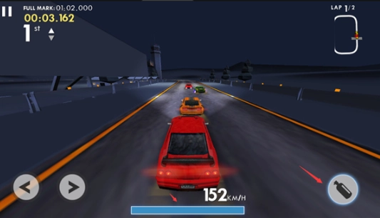 7、屏幕下方设有喷气能量槽,待能量蓄满后,长按右侧按键就能触发氮气加速,助你瞬间完成反超。