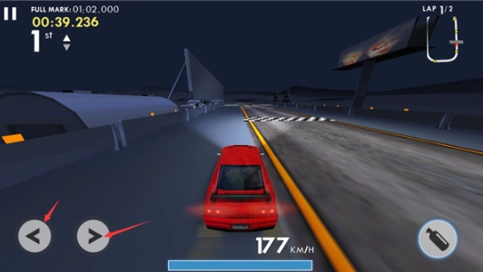 5、比赛进行时,可通过点击屏幕左侧的虚拟按键来操控车辆的转向和行驶方向;