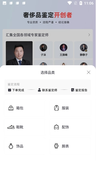 点击在线鉴定进入,选择你要鉴定物品的种类和品牌;
