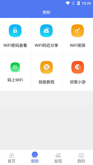 在应用程序里,用户能看到WiFi密码查看、分享WiFi、码上WiFi等各类功能工具,这些工具都能帮助用户更便捷地获取WiFi密码以及连接WiFi网络。