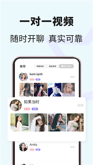 越约,搭建中国男生与越南女生聊天的桥梁,助力更多中国男生认识越南,也让更多越南女生了解中国文化。在这里,跨国界的聊天交友毫无障碍,系统能实时翻译双方语言,让沟通轻松无压力。用户还可以在线学习越南语,深入了解越南的风土人情;遇到心仪的女生,也能教她学习中文。平台实行真人认证,汇聚了众多高颜值、肤白貌美的小姐姐,期待你的邂逅。