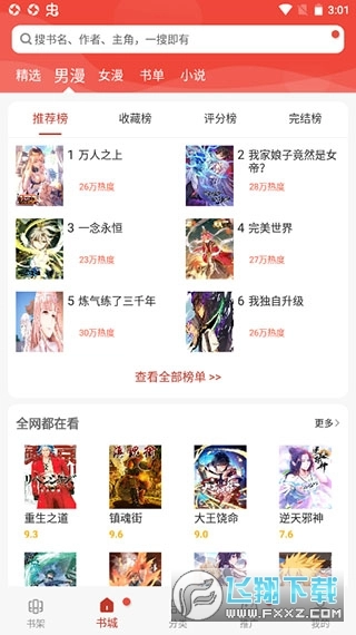 1、打开软件后直接进入书城,通过搜索引擎查找自己喜欢的漫画或小说。