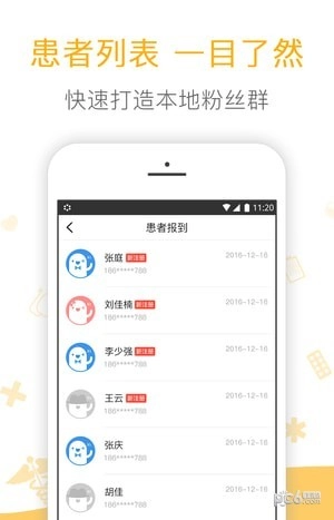 2、全新“圈子”功能,患者报到列表一目了然;